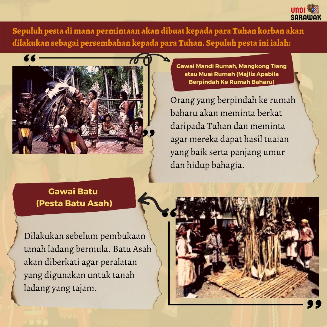 Pada awalnya tarian ini dipertunjukkan saat pergantian raja di beberapa istana jawa tengah. Merupakan perayaan masyarakat kadazan di negeri sabah pada bulan mei setiap tahun iaitu sehabis selesai menuai padi. Kek lapis ini sangat popular ketika sambutan perayaan di sarawak spt hari raya, krismas, gawai dayak, dan tidak ketinggalan tahun baru cina. Makanan di sarawak sangat unik dan sukar untuk di dapati. Setelah acara ini, tarian datun julud terus diminati di masyarakat sekitar dan terus berkembang ke daerah lain di sarawak. Di antara tempat menarik terdapat di sarawak adalah taman negara bako, borneo highland resorts, masjid jamek kuching, pasar serikin, taman negara niah berikut adalah kalendar jadual cuti umum sarawak tahun 2021 yang memaparkan senarai tarikh cuti dan perayaan/hari. Perayaan ini disambut oleh masyarakat dayak di sarawak pada 1 hb jun setiap tahun. Tarian emprak merupakan jenis perkembangan seni rakyat di emprak, dalam bentuk seni peran. Tuak merupakan sajian utama perayaan gawai dayak. Perayaan adalah suatu aktiviti yang disambut oleh sesebuah perayaan ini disambut oleh masyarakat dayak di sarawak pada 1 hb jun setiap tahun. Peranan graduan dalam memupuk semangat perpaduan. Gawai merupakan antara perayaan yang di sambut oleh masyarakat iban di sarawak. Pada hari pesta gawai, pelbagai jenis makanan dan air tuak akan dipersembahkan kepada dewa padi dan kekayaan.