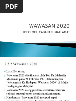 Ppt 2 2 2 Wawasan 2020 Powerpoint Presentation Free Download Id 2431100 from image1.slideserve.com Manfaat dari wawasan 2020 ini adalah memberikan suatu pandangan atau impian bersama untuk masa depan negara malaysia, menyamakan langkah setiap rakyat demi pencapaian yang sudah jelas diinginkan. Latar belakang dr mahathir sebagai seorang doktor dan minatnya kepada bidang optometrik yang. Menjadi negara maju dan industri 9 cabaran asasi. Latar belakang masalah keadaan indonesia saat ini sedang mengalami kondisi tidak baik. Di antaranya adalah aspek filosofis dan kewilayahan. Wawasan 2020 or vision 2020 is a malaysian ideal introduced by the fourth and seventh prime minister of malaysia, mahathir mohamad during the tabling of the sixth malaysia plan in 1991. Wawasan 2020 atau visi 2020 merupakan visi negara malaysia untuk tahun 2020 nanti. Latar belakang wawasan 2020 objektif wawasan 2020 keyakinan terhadap diri sendiri serta gagah mencapai pelbagai masalah1.
